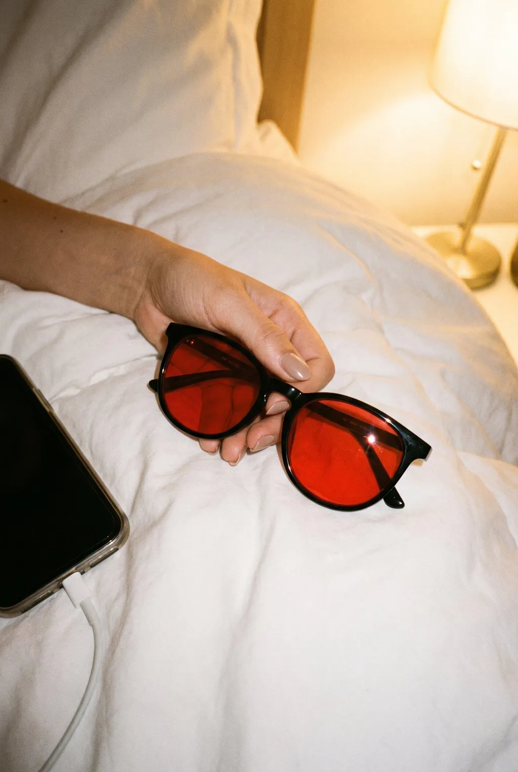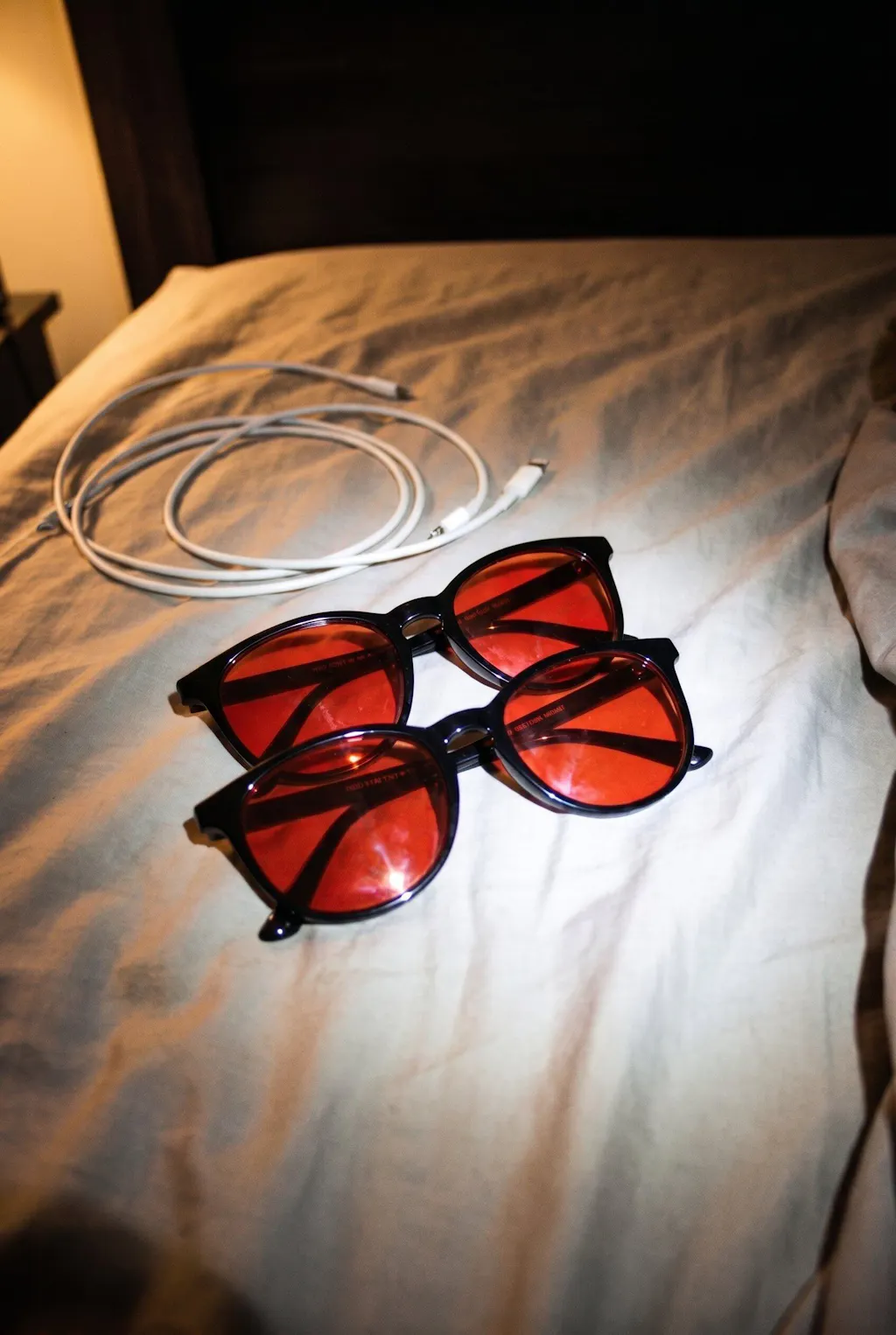 keyboard_arrow_downYes — that's exactly the point. The red lenses filter the harmful light spectrum so you can keep your normal evening routine without disrupting your sleep.